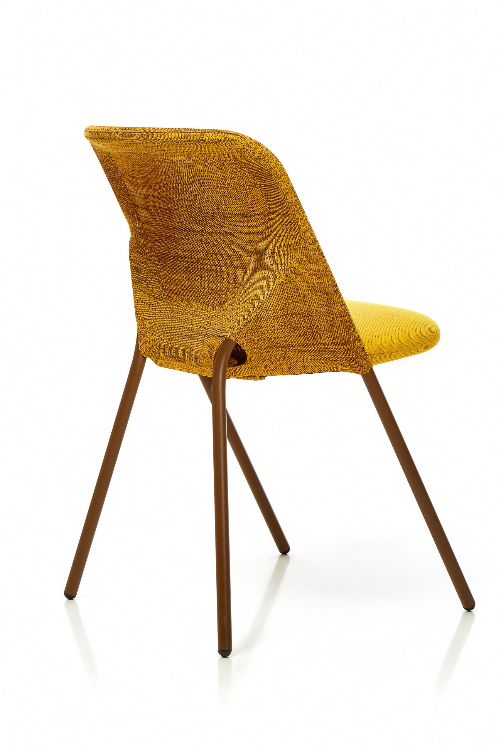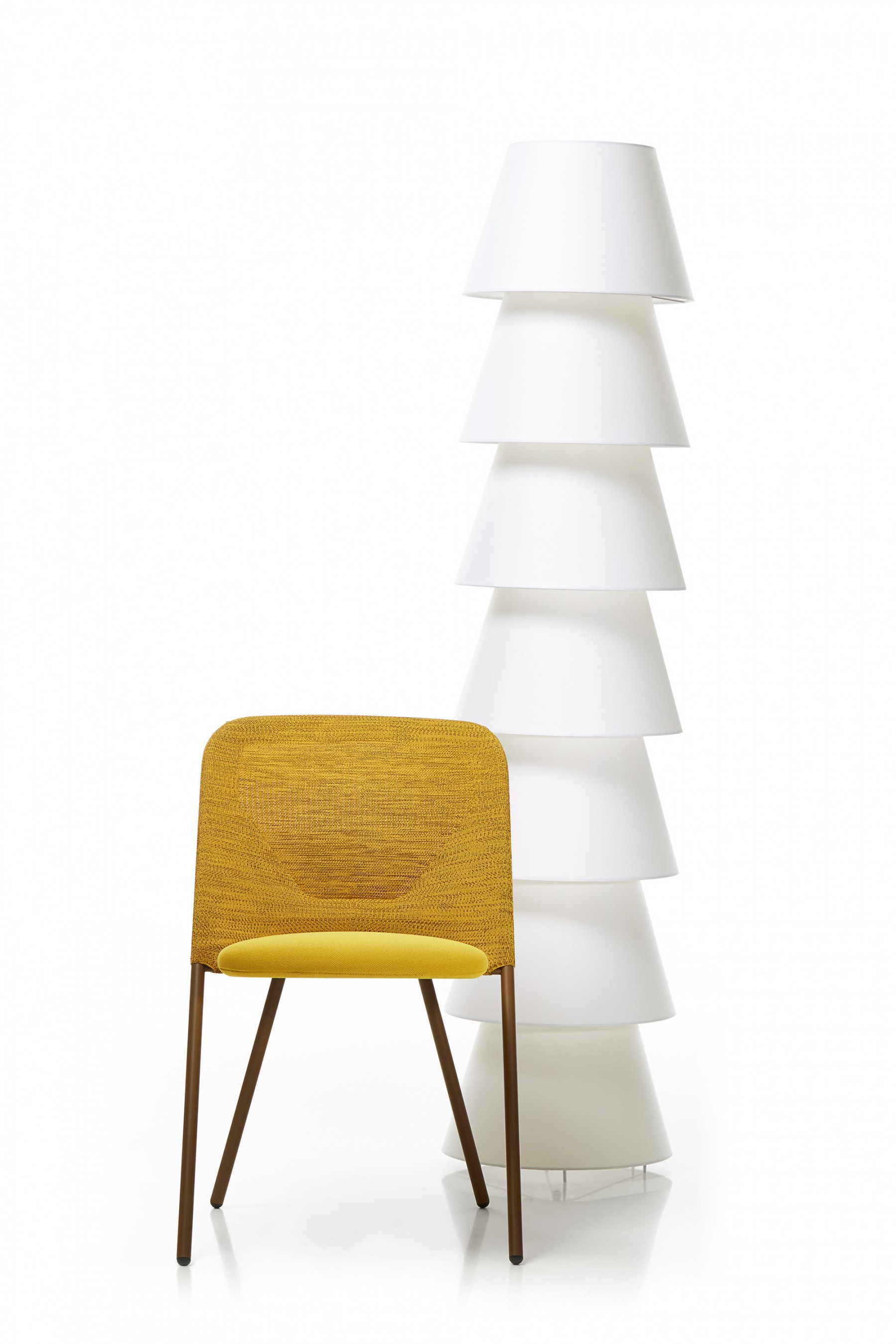 The upholstery is made with 3d knitting technique. The entire backrest textile is produced in one piece of fabric. No waste since there is no cutting and sewing.